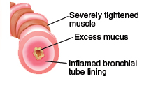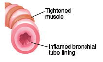 La inflamación e hinchazón del revestimiento de las vías respiratorias (los bronquios)